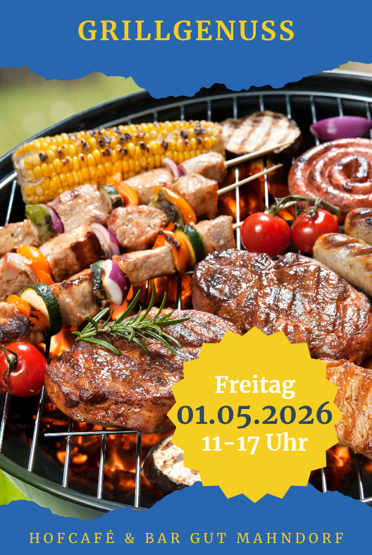 Grill-Event vorm Hofcafé, Leckeres frisch vom Grill. Genießt knusprige Würstchen, saftige Nackensteaks und würzigen Käse – perfekt serviert im Brötchen, auf Wunsch mit Beilagen wie Krautsalat und Kartoffelsalat. Kommt vorbei und verbringt einen entspannten Tag bei uns.